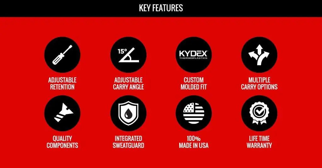 All of our holsters are handmade with pride in the USA. Each holster is crafted using the absolute best quality materials, components, and workmanship available, and therefore carries our:
