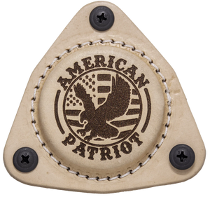Won't scratch firearm’s finish, top-grade leather cover with embossed graphic.