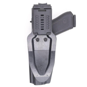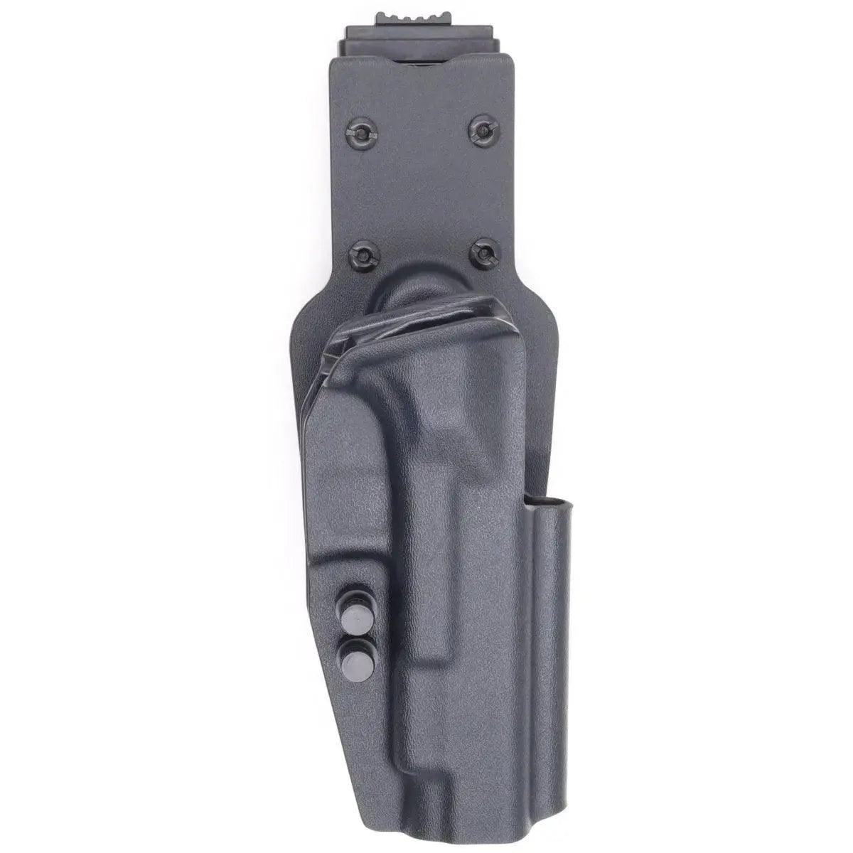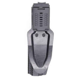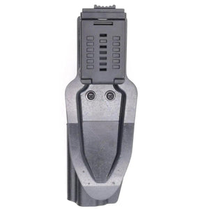 Our Outside the Waistband Competition Holster is designed for sport shooting. This holster has an adjustable retention and cant for the users preferred carry position. The lockable push button clip supports belts from 1.5" - 1.75" wide and has a Velcro patch to prevent sliding during competition setting. The holster mounting plate is designed to be supported by the leg and at the ready and allow freedom of movement on the run. The deep cut on the holster spine assist the user with fast draw and re-holstering.