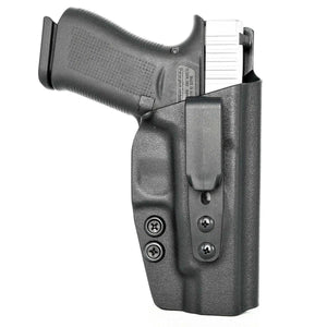 Ambidextrous, Fully Adjustable, Claw Compatible Tuckable IWB KYDEX Holster. We took our extremely popular Hand Molded IWB KYDEX Holster and improved upon it to create a true minimalist Tuckable IWB Holster that is fully adjustable for both LH & RH carry at any position along your belt line. Plus you can tuck in your shirt while carrying!