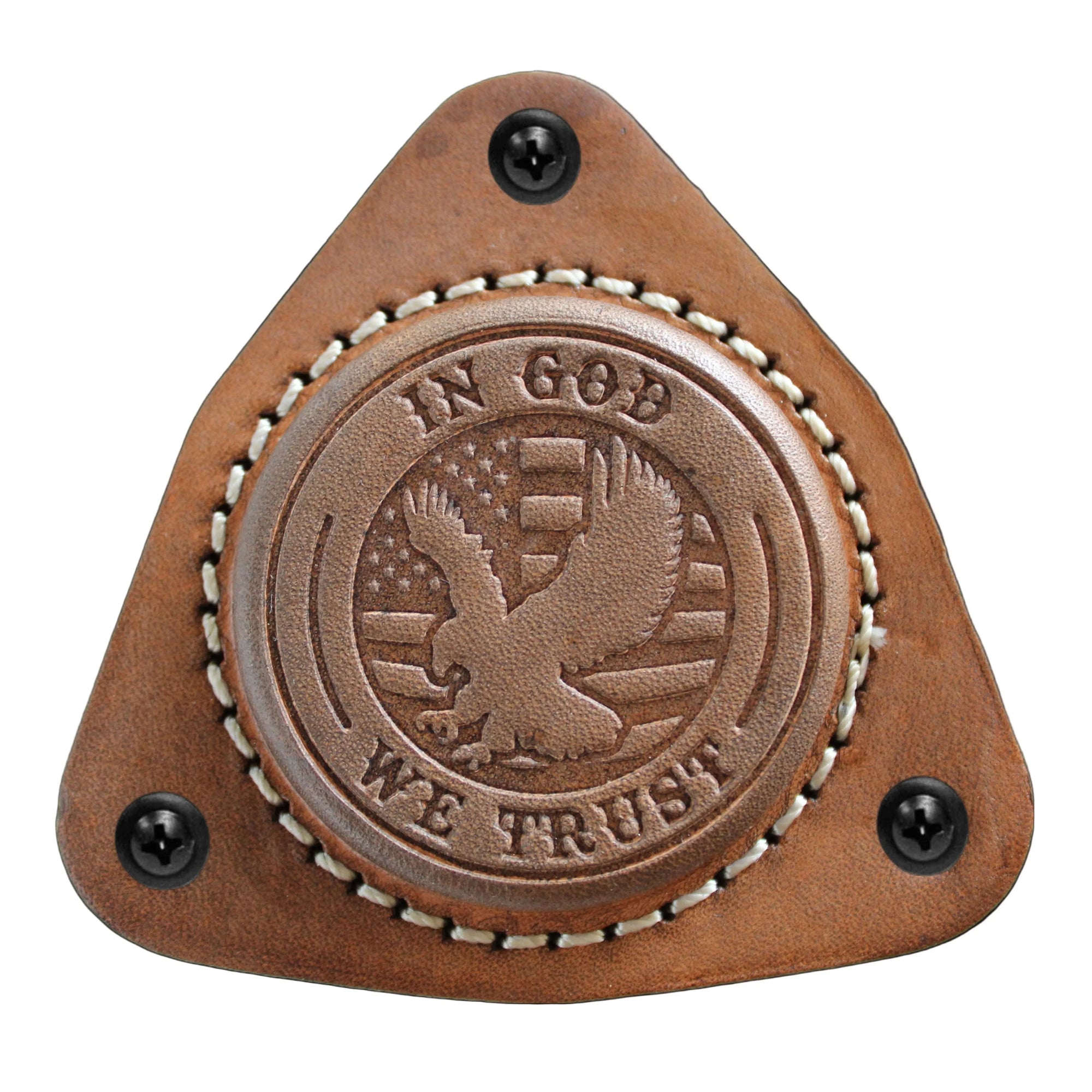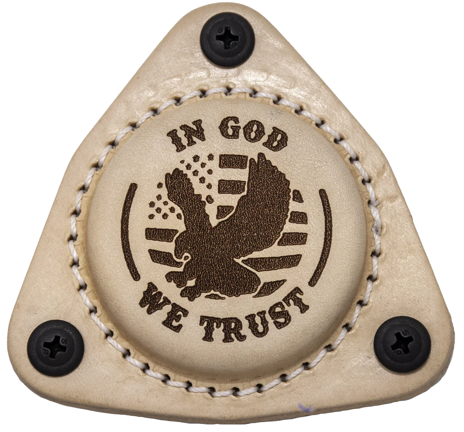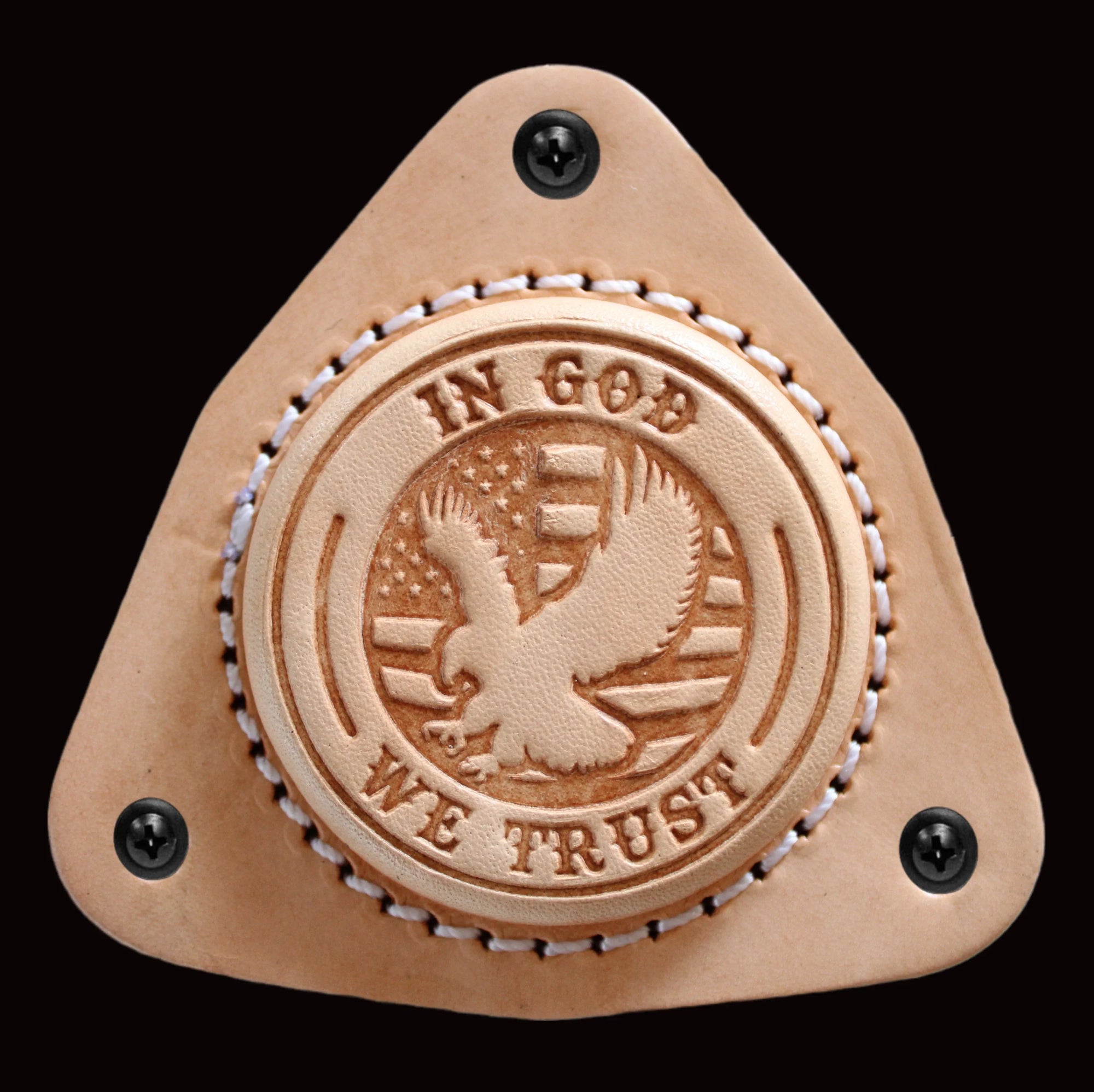 Won't scratch firearm’s finish, top-grade leather cover with embossed graphic.