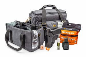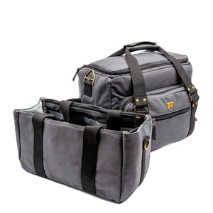 The Range Bag Starter Kit comes with everything you need to get you started for a day at the range or weekend trip. Waterproof canvas keep your gear safe while the removable dividers let you customize the bag. Internal quick access elastic mag and accessory panel as well as elastic loops under the lid give you the ability to carry loaded anywhere you go and that's just the main compartment. Three side pockets let you pack even more while being organized.
