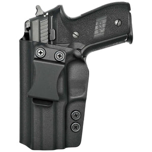 Precision Formed Adjustable Cant Sig Sauer P229 IWB Holster. Our minimalist inside the waistband KYDEX holsters protect your weapon from moisture while remaining extremely lightweight and durable. They are the best IWB holsters for every day concealed carry of your weapon. Our IWB holsters are comfortable enough for everyday use and very easy to hide no matter how you are dressed. Our holsters are perfect for inside the waistband concealed carry at virtually any position along your waist including Appendix Carry, Hip Carry, Back Carry, Cross Draw. Adjustable retention and adjustable cant make it easy to setup your holster just right. We only use top quality US made hardware, and all our screws are pre-dressed with threadlock, so they stay put no matter what.