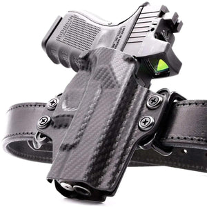Our minimalist outside the waistband KYDEX Belt Loop holsters hold your weapon securely while remaining extremely lightweight and durable. They are the perfect holster for every day OWB Belt Loop carry.